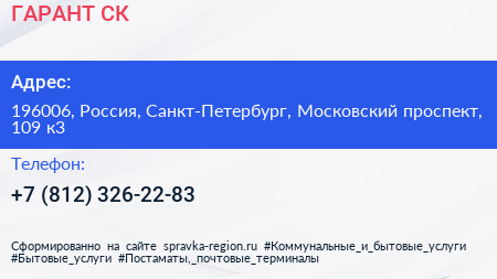ГАРАНТ-СК по адресу 196006, Россия, Санкт-Петербург, Московский проспект, 109 к3 в дальнейшем Организация, размещена в следующих категориях: