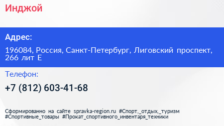 Инджой по адресу 196084, Россия, Санкт-Петербург, Лиговский проспект, 266 лит Е в дальнейшем Организация, размещена в следующих категориях: