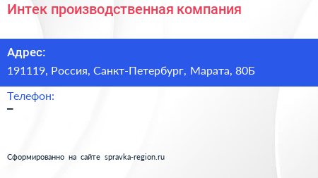Интек, производственная компания по адресу 191119, Россия, Санкт-Петербург, Марата, 80Б в дальнейшем Организация, размещена в следующих категориях: