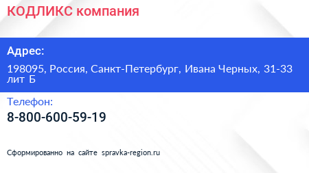 КОДЛИКС, компания по адресу 198095, Россия, Санкт-Петербург, Ивана Черных, 31-33 лит Б в дальнейшем Организация, размещена в следующих категориях: