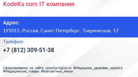 KodeKs.com, IT-компания по адресу 191015, Россия, Санкт-Петербург, Таврическая, 17 в дальнейшем Организация, размещена в следующих категориях: