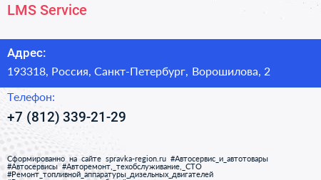 LMS-Service по адресу 193318, Россия, Санкт-Петербург, Ворошилова, 2 в дальнейшем Организация, размещена в следующих категориях: