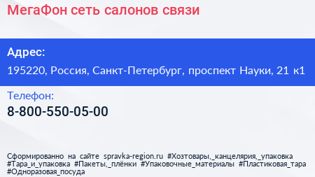 МегаФон, сеть салонов связи по адресу 195220, Россия, Санкт-Петербург, проспект Науки, 21 к1 в дальнейшем Организация, размещена в следующих категориях:
