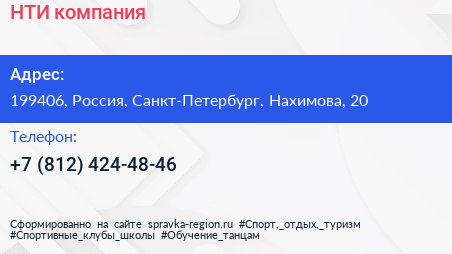 НТИ, компания по адресу 199406, Россия, Санкт-Петербург, Нахимова, 20 в дальнейшем Организация, размещена в следующих категориях: