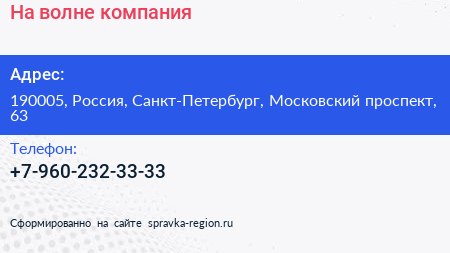 На волне, компания по адресу 190005, Россия, Санкт-Петербург, Московский проспект, 63 в дальнейшем Организация, размещена в следующих категориях: