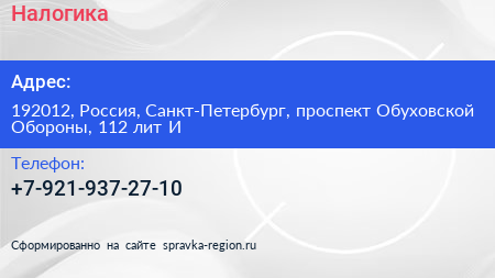 Налогика по адресу 192012, Россия, Санкт-Петербург, проспект Обуховской Обороны, 112 лит И в дальнейшем Организация, размещена в следующих категориях: