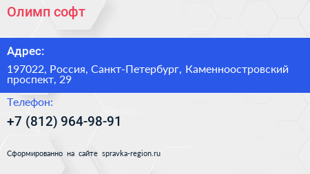 Олимп-софт по адресу 197022, Россия, Санкт-Петербург, Каменноостровский проспект, 29 в дальнейшем Организация, размещена в следующих категориях: