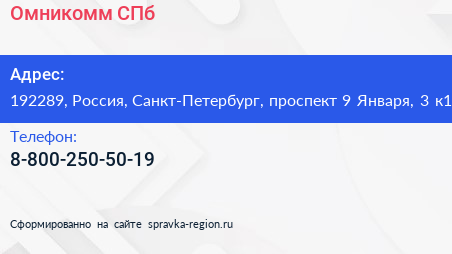 Омникомм-СПб по адресу 192289, Россия, Санкт-Петербург, проспект 9 Января, 3 к1 в дальнейшем Организация, размещена в следующих категориях: