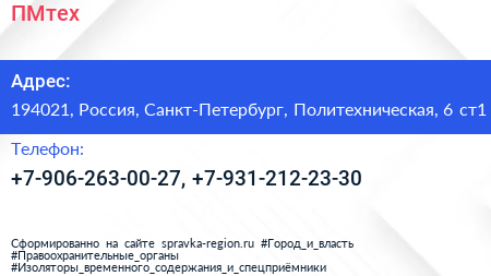ПМтех по адресу 194021, Россия, Санкт-Петербург, Политехническая, 6 ст1 в дальнейшем Организация, размещена в следующих категориях: