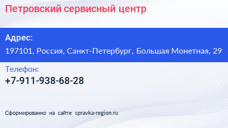 Петровский, сервисный центр по адресу 197101, Россия, Санкт-Петербург, Большая Монетная, 29 в дальнейшем Организация, размещена в следующих категориях: