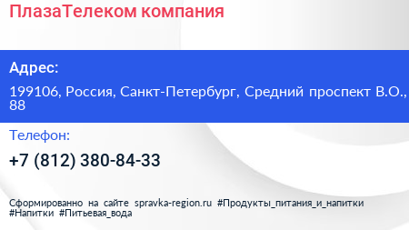 ПлазаТелеком, компания по адресу 199106, Россия, Санкт-Петербург, Средний проспект В.О., 88 в дальнейшем Организация, размещена в следующих категориях:
