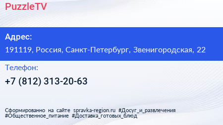 PuzzleTV по адресу 191119, Россия, Санкт-Петербург, Звенигородская, 22 в дальнейшем Организация, размещена в следующих категориях: