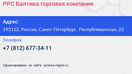 РРС-Балтика, торговая компания по адресу 195112, Россия, Санкт-Петербург, Республиканская, 22 в дальнейшем Организация, размещена в следующих категориях:
