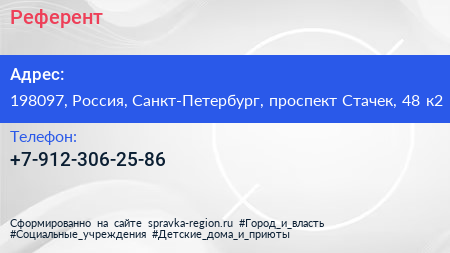 Референт по адресу 198097, Россия, Санкт-Петербург, проспект Стачек, 48 к2 в дальнейшем Организация, размещена в следующих категориях: