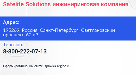 Satelite Solutions, инжиниринговая компания по адресу 195269, Россия, Санкт-Петербург, Светлановский проспект, 60 к3 в дальнейшем Организация, размещена в следующих категориях: