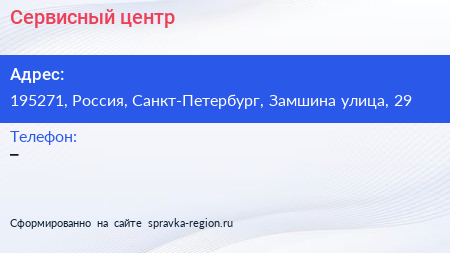 Сервисный центр по адресу 195271, Россия, Санкт-Петербург, Замшина улица, 29 в дальнейшем Организация, размещена в следующих категориях: