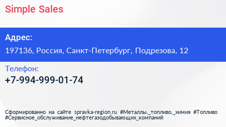 Simple Sales по адресу 197136, Россия, Санкт-Петербург, Подрезова, 12 в дальнейшем Организация, размещена в следующих категориях: