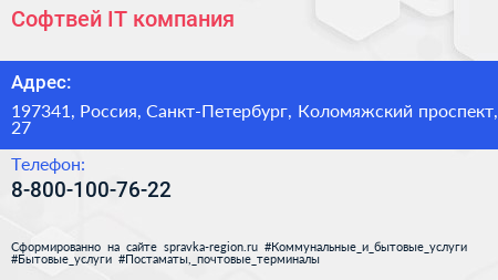 Софтвей, IT-компания по адресу 197341, Россия, Санкт-Петербург, Коломяжский проспект, 27 в дальнейшем Организация, размещена в следующих категориях: