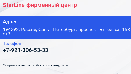 StarLine, фирменный центр по адресу 194292, Россия, Санкт-Петербург, проспект Энгельса, 163 ст3 в дальнейшем Организация, размещена в следующих категориях: