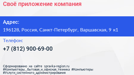 Своё приложение, компания по адресу 196128, Россия, Санкт-Петербург, Варшавская, 9 к1 в дальнейшем Организация, размещена в следующих категориях: