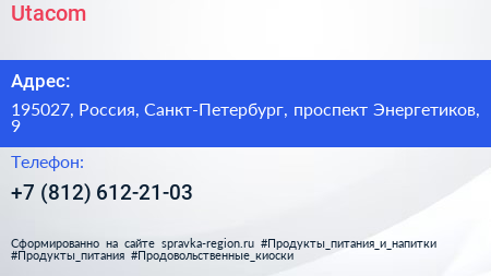 Utacom по адресу 195027, Россия, Санкт-Петербург, проспект Энергетиков, 9 в дальнейшем Организация, размещена в следующих категориях: