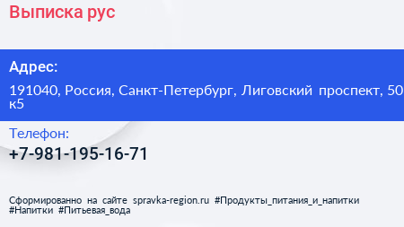 Выписка.рус по адресу 191040, Россия, Санкт-Петербург, Лиговский проспект, 50 к5 в дальнейшем Организация, размещена в следующих категориях: