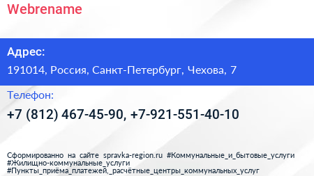 Webrename по адресу 191014, Россия, Санкт-Петербург, Чехова, 7 в дальнейшем Организация, размещена в следующих категориях: