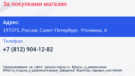 За покупками, магазин по адресу 197371, Россия, Санкт-Петербург, Уточкина, 6 в дальнейшем Организация, размещена в следующих категориях: