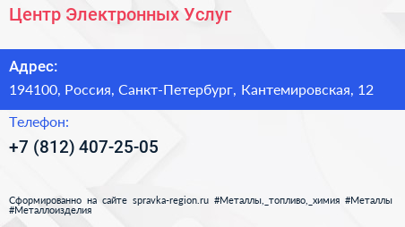 Центр Электронных Услуг по адресу 194100, Россия, Санкт-Петербург, Кантемировская, 12 в дальнейшем Организация, размещена в следующих категориях: