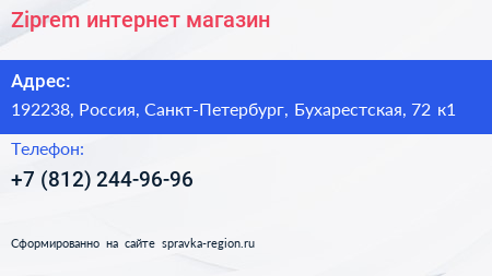 Ziprem, интернет-магазин по адресу 192238, Россия, Санкт-Петербург, Бухарестская, 72 к1 в дальнейшем Организация, размещена в следующих категориях: