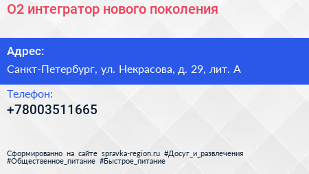 О2.интегратор нового поколения по адресу Санкт-Петербург, ул. Некрасова, д. 29, лит. А в дальнейшем Организация, размещена в следующих категориях: