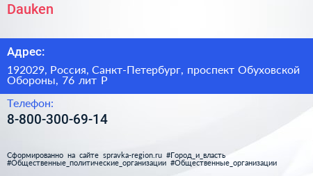 Dauken по адресу 192029, Россия, Санкт-Петербург, проспект Обуховской Обороны, 76 лит Р в дальнейшем Организация, размещена в следующих категориях: