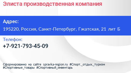 Элиста, производственная компания по адресу 195220, Россия, Санкт-Петербург, Гжатская, 21 лит Б в дальнейшем Организация, размещена в следующих категориях: