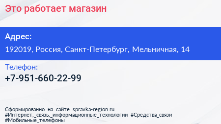 Это работает!, магазин по адресу 192019, Россия, Санкт-Петербург, Мельничная, 14 в дальнейшем Организация, размещена в следующих категориях: