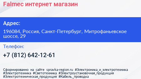 Falmec, интернет-магазин по адресу 196084, Россия, Санкт-Петербург, Митрофаньевское шоссе, 29 в дальнейшем Организация, размещена в следующих категориях: