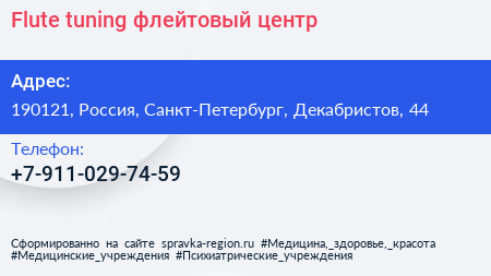 Flute tuning, флейтовый центр по адресу 190121, Россия, Санкт-Петербург, Декабристов, 44 в дальнейшем Организация, размещена в следующих категориях: