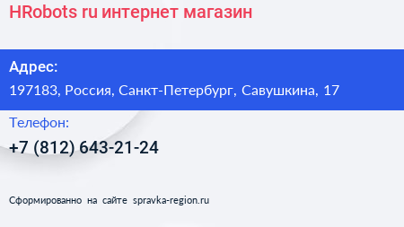 HRobots.ru, интернет-магазин по адресу 197183, Россия, Санкт-Петербург, Савушкина, 17 в дальнейшем Организация, размещена в следующих категориях: