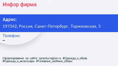 Инфор, фирма по адресу 197342, Россия, Санкт-Петербург, Торжковская, 5 в дальнейшем Организация, размещена в следующих категориях: