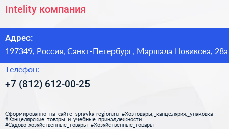 Intelity, компания по адресу 197349, Россия, Санкт-Петербург, Маршала Новикова, 28а в дальнейшем Организация, размещена в следующих категориях: