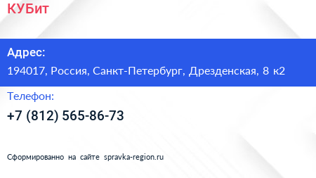 КУБит по адресу 194017, Россия, Санкт-Петербург, Дрезденская, 8 к2 в дальнейшем Организация, размещена в следующих категориях: