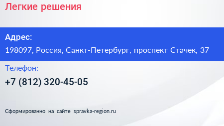 Легкие решения по адресу 198097, Россия, Санкт-Петербург, проспект Стачек, 37 в дальнейшем Организация, размещена в следующих категориях:
