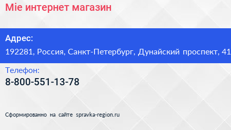 Mie, интернет-магазин по адресу 192281, Россия, Санкт-Петербург, Дунайский проспект, 41 в дальнейшем Организация, размещена в следующих категориях: