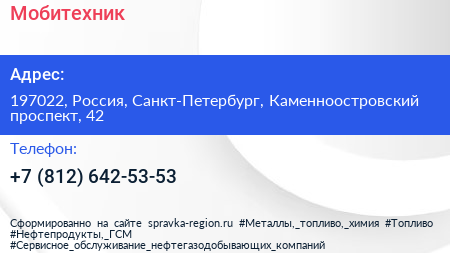 Мобитехник по адресу 197022, Россия, Санкт-Петербург, Каменноостровский проспект, 42 в дальнейшем Организация, размещена в следующих категориях:
