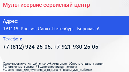 Мультисервис, сервисный центр по адресу 191119, Россия, Санкт-Петербург, Боровая, 6 в дальнейшем Организация, размещена в следующих категориях:
