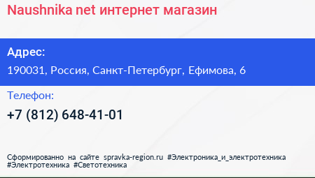 Naushnika.net, интернет-магазин по адресу 190031, Россия, Санкт-Петербург, Ефимова, 6 в дальнейшем Организация, размещена в следующих категориях: