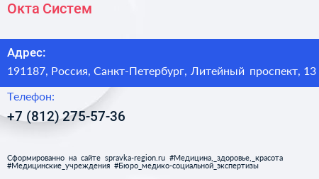 Окта Систем по адресу 191187, Россия, Санкт-Петербург, Литейный проспект, 13 в дальнейшем Организация, размещена в следующих категориях: