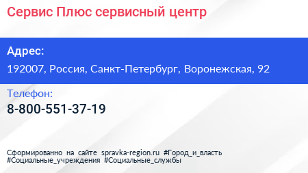 Сервис Плюс, сервисный центр по адресу 192007, Россия, Санкт-Петербург, Воронежская, 92 в дальнейшем Организация, размещена в следующих категориях: