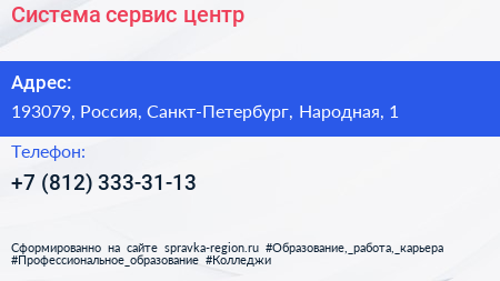 Система, сервис-центр по адресу 193079, Россия, Санкт-Петербург, Народная, 1 в дальнейшем Организация, размещена в следующих категориях: