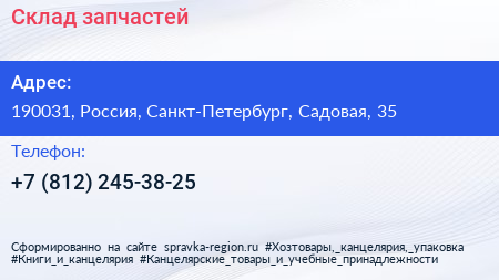 Склад запчастей по адресу 190031, Россия, Санкт-Петербург, Садовая, 35 в дальнейшем Организация, размещена в следующих категориях: