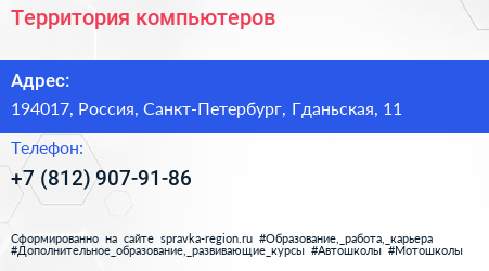 Территория компьютеров по адресу 194017, Россия, Санкт-Петербург, Гданьская, 11 в дальнейшем Организация, размещена в следующих категориях: